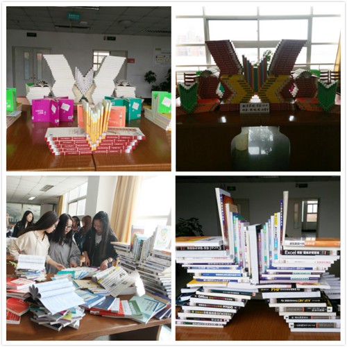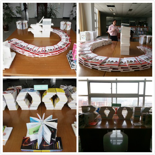 各楼层指导教师带领勤工助学和劳动课学生精心挑选出一批新图书,设计成各种优美的造型,以艺术品的形式展示给读者。三楼书库主要展示《首席智囊》《如何读,为什么读》《未来世界》等图书;四楼书库主要展示《人工智能》《彩色电视机维修技能》《精美幻灯片制作》等图书;五楼书库主要展示《静悄悄的革命--课堂改变,学校就会改变》《雨果研究文集》《海明威研究文集》等图书;六楼书库主要展示《父母是孩子最好的营养师》《自然史》《一日顺时养生法》等图书。