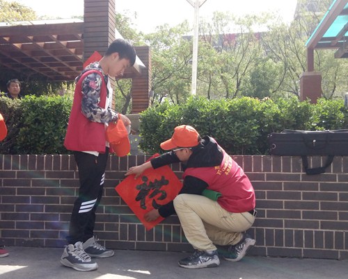 志愿者们早早地来到了马濠公园南广场,配合街道工作人员维护现场秩序,向市民分发宣传手册,张贴“家风家训”对联,并向市民宣传传统家风家训。在志愿者们的宣传下,越来越多的人了解到从“一粥一饭,当思来处不易”的《朱子家训》到“勤读圣贤书,尊师如重亲”的《范仲淹家训》等传统经典家训。