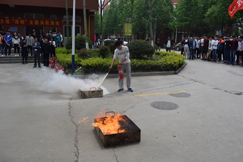 学生消防社同学做灭火示范