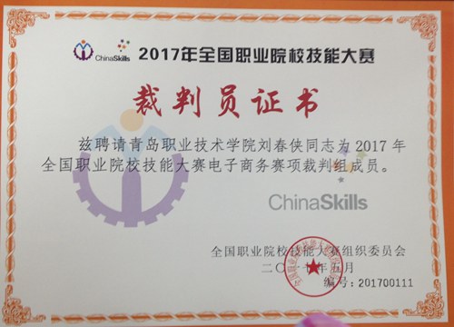 5月12日,2017年全国职业院校技能大赛高职组电子商务技能赛项在天津商务职业技术学院举行,我院商学院电子商务专业带头人刘春侠应大赛执委会邀请,和来自全国不同省市的20名裁判,经过两天的赛前培训,在大赛专家组和裁判长的指导下,大赛监督长的监督下,顺利完成此赛项的执裁工作。