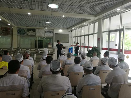 5月16日下午,后勤服务中心在海悦厅教工食堂组织了“食堂窗口服务礼仪交流学习”活动,食堂劳动课学生和食堂从业人员参加了此次活动。