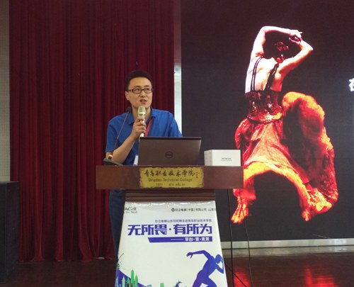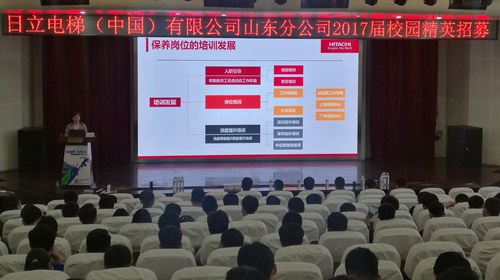 张丽雅从电梯行业的发展介绍了日立集团的经营理念以及企业使命、企业价值观和企业愿景。同时分析了公司的战略发展目标,重点讲述了日立电梯(中国)有限公司山东分公司在山东省内的战略布局及公司近期完成的重点项目,企业广阔的发展前景和积极开拓进取的新文化理念冲击着每位听众。针对此次招募的保养工程师岗位,张丽雅介绍了岗位的工作地点、岗位性质、岗位职责、岗位要求,培训发展和晋升通道以及薪酬福利收入构成等,指导应聘者有职业愿景、有规划地选择岗位发展。我院2005届优秀毕业生胡明波站长回到母校也即兴分享了自己在企业的成长历程,鼓励同学们做好职业生涯规划。