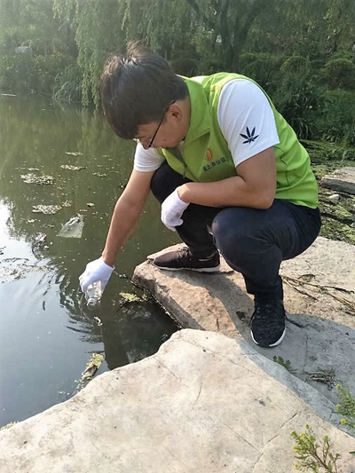 志愿者采集河水样品