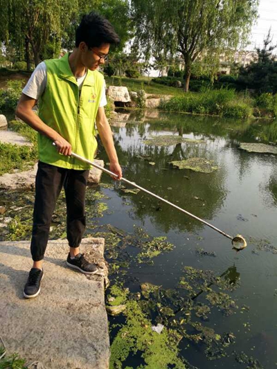 活动当天,环境监测与控制技术专业的5名志愿者到达辛安河,配合爱之声公益组织技术人员进行水质检测。志愿者分别在辛安国货的前河和后河进行采样,利用自己所学的专业知识以及视觉、嗅觉,对河水的色度、浑浊度、臭和味进行了检测。水质检测的指标主要包括色度、浑浊度、臭和味、余氯、化学需氧量、细菌总数、总大肠菌群、耐热大肠菌群、大肠埃希氏菌。分析了河水的水质问题后,爱之声公益组织及志愿者们呼吁广大人民群众参加到保护河流环境的活动中去,为生态文明建设贡献力量。