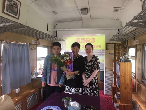 5月19日下午,旅游学院工会在T-Garden咖啡厅为离退休教工管桂芹举办主题为“感恩有您”的座谈会。管桂琴老师、旅游学院相关负责人及教师代表,国际公寓实习学生,毕业生代表等人参加座谈会。座谈中,旅游学院姜龙生老师介绍了管桂琴老师在国际公寓岗位上尽职尽责的工作历程以及同事之间的友谊。会上,首先播放了视频《感恩有您——回忆在一起的日子》,视频上的一张张照片反映了管桂琴老师在旅游学院工作的场景。管桂琴老师看到视频,非常激动,她回顾了自己自2002年来到学院至今近15年的工作历程,交流了职业生涯体会,感谢同事们对自己工作的支持,感谢学生们对自己的关爱。