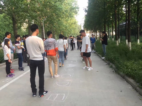 活动分为“万里长城永不倒”“宇宙飞船”“换位思考”3个环节,不仅考验同学之间的相互配合及信任,而且考验同学们的团队合作精神。通过对鸡蛋、报纸、软纸巾、筷子、粉笔等材料的利用,每组队员认真讨论并尊重每位队友的意见,大家相互配合,耐心十足,积极地参与到活动中,努力为团队赢得胜利。