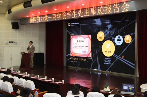 5月25日下午,由商学院主办的“榜样的力量”——商学院2017年优秀学生事迹报告会在艺术厅举行。商学院党总支书记刘建东、副书记郝淼,全体辅导员以及近600名同学参加了报告会。