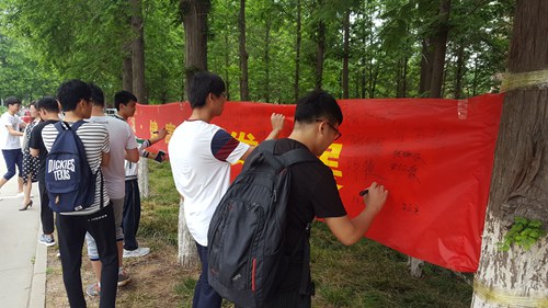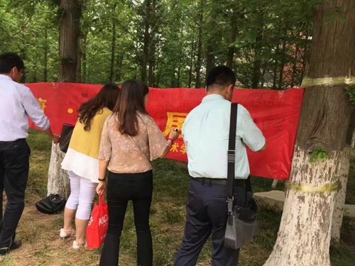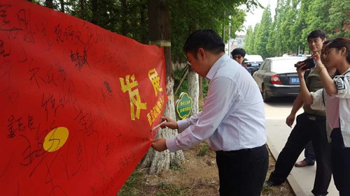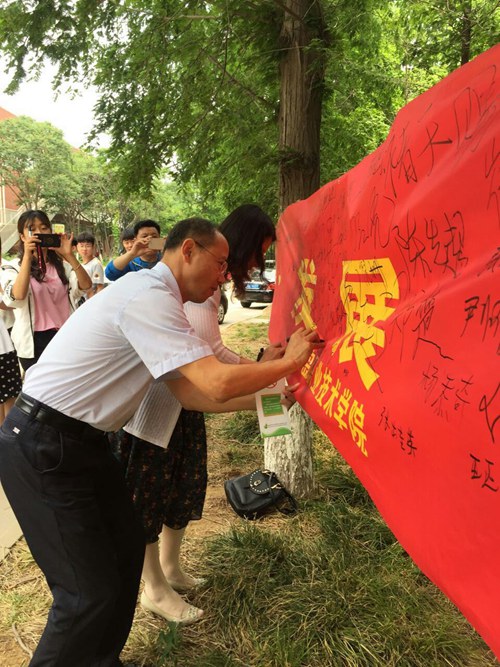 纪委书记刘伟和副院长邢广陆在签名横幅上签名