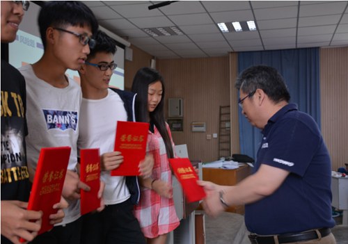 数学建模协会指导教师赵文启为二等奖获奖选手颁奖