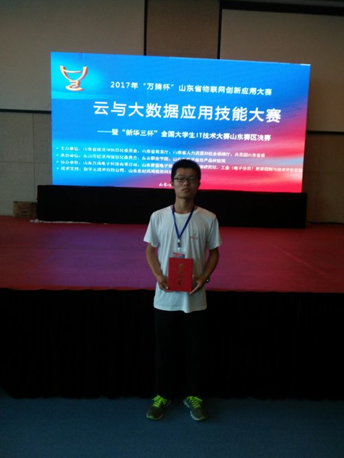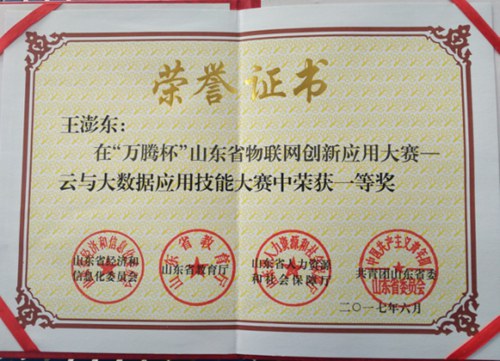 6月10日,由山东省经济和信息化委员会、山东省教育厅、山东省人力资源和社会保障厅、共青团山东省委联合主办的“2017年‘万腾杯’山东省物联网创新应用大赛----云与大数据应用技能大赛”在东营职业学院落下帷幕,我院信息学院派出了9名学生参加了大赛,并一举拿下一等奖1项、二等奖3项、三等4项的优异成绩。