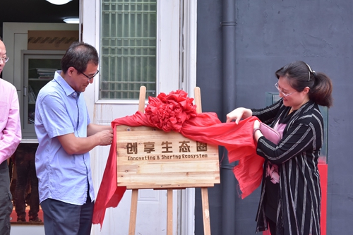 仪式上,赵悦与李志强共同为艺术学院“创享生态圈”揭牌,这标志着艺术学院的双创教育迈上了一个新的台阶。李志强在致辞中表示,艺术学院将以“创享生态圈”建设为契机,加快探索人才创新思维和创业能力培养体系、培养标准,建设一批前沿的创新创业载体和平台,吸引更多力量参与创新创业教育。揭牌仪式后,老师、同学们分别参观了“创享生态圈”各工作室并参加了体验活动。