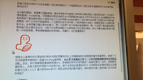 日前,旅游学院收到来自青岛香格里拉大酒店传来的喜讯,我院2015级酒店管理专业学生孟婉莹实习仅一个月就收到卢森堡大使馆副馆长的表扬信。