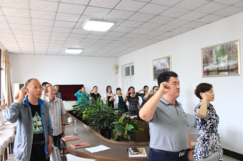 活动最后,党员同志们面对党旗,重温入党誓词,更加坚定了为共产主义奋斗终身的理想信念。