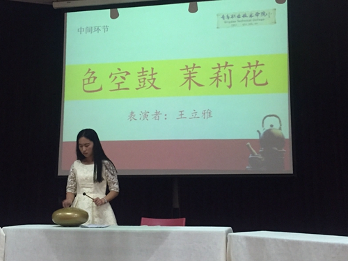 在悠扬的古筝曲《云水禅心》中,茶艺表演开始,选手们备具、备水、行礼后落座,依次进行翻杯、品茶、赏茶、温具、置茶、温润泡、洗茶、冲泡,最后,由选手们向评委老师奉茶。整个过程中,选手们面带微笑,自信优雅,温和婉约,举止投足之间姿势优雅,让观众和裁判评委领略到现代大学生的气质和风采,赢得了在场观众的阵阵掌声。比赛期间,旅游管理专业学生王立雅同学表演了色空鼓演奏。为使更多同学积极学习茶文化和参与茶活动,辛颖秀利用信息化软件“蓝墨云班课”让学生们积极抢答茶问题,现场气氛积极热烈,将活动推向高潮。