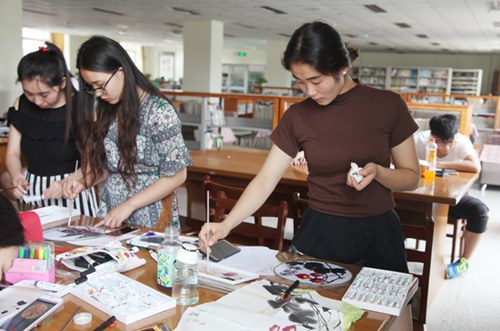 “夏日清风——手绘纸扇比赛”在图书馆东厅举行,同学们心怀对即将毕业的学长们的深深不舍,现场挥毫泼墨,有临摹有自创,画出一幅幅充满深情的扇面。此次活动共有近30名同学报名,比赛共评选出一等奖2名,二等奖4名,三等奖5名,同学们的获奖作品悬挂在图书馆二楼天花板上,生动有趣,自成一景,引得不少毕业生驻足观看,成为毕业季中一道亮丽的风景。