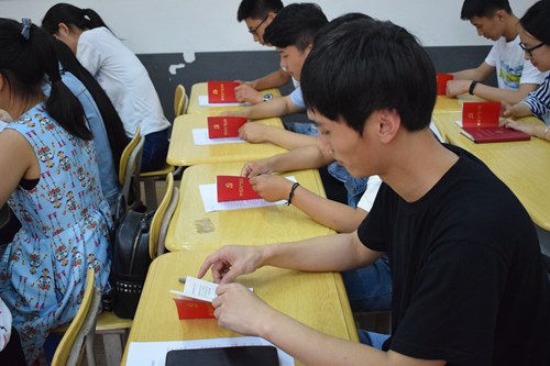 此次主题党日活动共有预备党员转正大会、学习党章、“不忘初心,交心谈心”、毕业生党员组织生活会5项内容。首先举行的是2016年上半年预备党员转正大会,经支部大会讨论、投票,一致同意杨雪艳等10名同志按期转正。随后,全体党员在党旗下重温入党誓词并分组学习了党章。之后,毕业生党员和在校党员、入党积极分子进行了“不忘初心,交心谈心”座谈活动,各位党员紧密联系各自思想和工作实际,敞开心扉,踊跃发言,畅谈对开展“两学一做”学习教育的认识和体会,最后的组织生活会上,各位党员同志对照党章党规、对照合格党员的标准,认真提出自身存在的问题和不足,提出了改进提高的措施和办法。