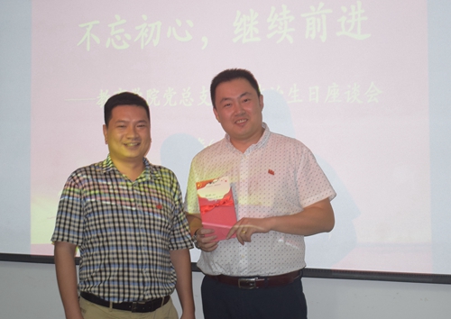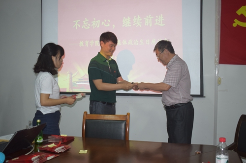 在中国共产党成立96周年来临之际,为更好地强化全体党员的宗旨意识和责任意识,提升党员的党性修养,6月26日下午,教育学院党总支举行“不忘初心,继续前进”党员集体政治生日座谈会。全体教师党员与学生党员参加了此次活动。