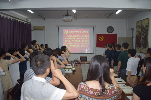 本次集体政治生日活动主要分为四部分。首先,由党员代表牛云龙老师带领全体党员同志重温入党誓词。随后,由党总支支委党员为学院教师党员赠送政治生日贺卡。各支部党员代表发言,交流自己的入党经历以及如何在工作中更好地履职尽责。最后,活动在全体党员齐唱《国际歌》中结束。整个活动过程中,现场气氛活跃,党员代表踊跃发言。