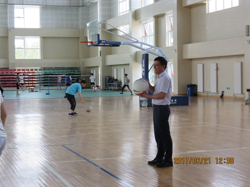 党委副书记、院工会主席刘甲珉为比赛开球