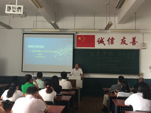 技术沙龙旨在为学院教师提供一个分享技术的公共平台,主要由近期参加校外师资培训的教师作为主讲,将培训中收获的先进关键技术、行业最新导向和新颖教学理念等,通过沙龙的形式介绍给其他感兴趣的老师。本期技术沙龙由李金领老师主讲的“智能可穿戴设备概述”以及张元斌老师主讲的“拥抱万物互联——低功耗广域网(LPWAN)传输技术浅析”两部分组成,两位老师准备充分,讲解生动有趣,充分调动了其他教师对物联网新技术的兴趣。