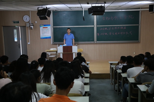 7月3日,生物与化工学院在致用楼举行2016级学生组织换届暨2015级学生组织卸任仪式。生物与化工学院党总支书记邵凯、学生工作负责人朱思伟、2015级学生组织干部以及2016级班长团支书参加了此次活动。