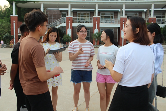 7月7日下午,“寻根红色文化”和“社区1+1”社会实践团在学院回音广场联合开展了实践团队破冰活动。