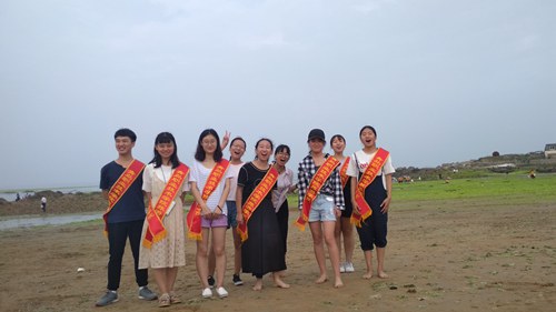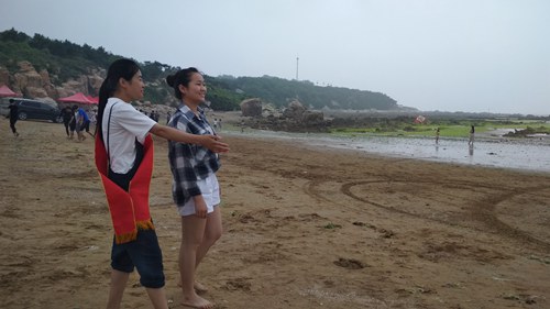 7月12日,旅游学院旅游管理专业2016-5班的志愿服务团队成员在黄岛银沙滩开展景区志愿讲解活动。