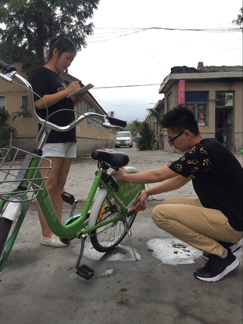 7月11日,商学院志愿者来到学校周边的小区和街道,对有损坏的共享单车进行了维护与检修。