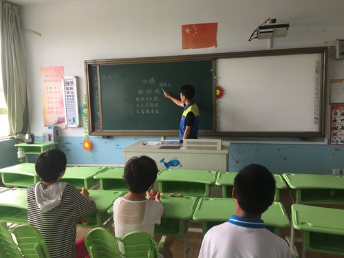 8日上午同学们按计划从学校出发,到达胶州聋哑学校。志愿者们根据实际教学需求,进行了教学分工,与老师们一起为小朋友们辅导功课。走进教室与小朋友们初次见面,小朋友们的热情感染了志愿者。课堂上志愿者们认真授课,课下与小朋友们做游戏,一起拼积木、学跳舞、讲故事,并发给小朋友们彩笔等小礼品。在5天的支教活动中,志愿者陪伴小朋友们学习、玩耍,小朋友们主动向志愿者询问问题,将志愿者当做自己的大哥哥来看待,与志愿者建立了深厚的友谊。