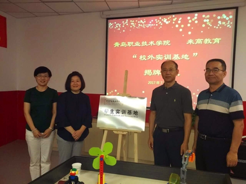 纪委书记刘伟、青岛来高科技培训学校校长王文、海尔学院院长张明耀等共同为实训基地揭牌