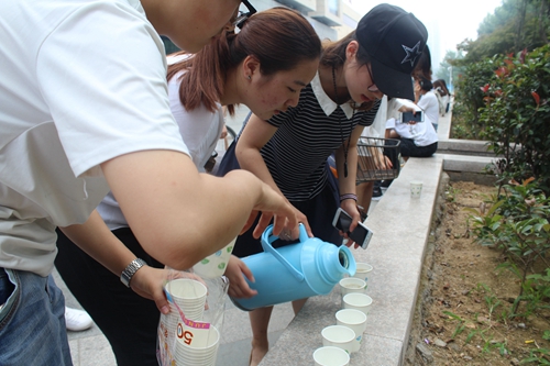 活动开展前,志愿者们为环卫工人们亲手熬制了加糖的和不加糖的两种绿豆汤。活动中,志愿者们分组来到街道上,与环卫工人主动问好,并送上已经准备好的解暑绿豆汤,环卫工人们向志愿者们纷纷表示感谢。志愿者们表示,大家应更多地关注、关心、关爱这些站在高温一线默默付出的劳动者。