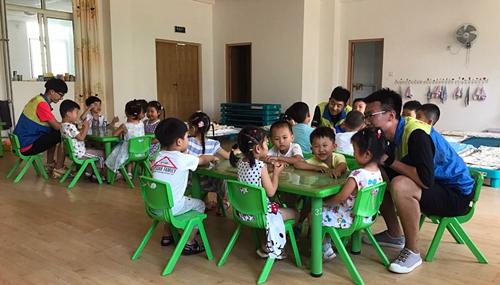 志愿者提前与社区负责人进行了对接商议,在社区的支持下6名志愿者来到了山里社区幼儿园,协助教师完成课程教学工作,陪小朋友们做游戏,拼积木、讲故事,并为大班的小朋友们进行了读拼音、学跳舞、看图识字等课外辅导。