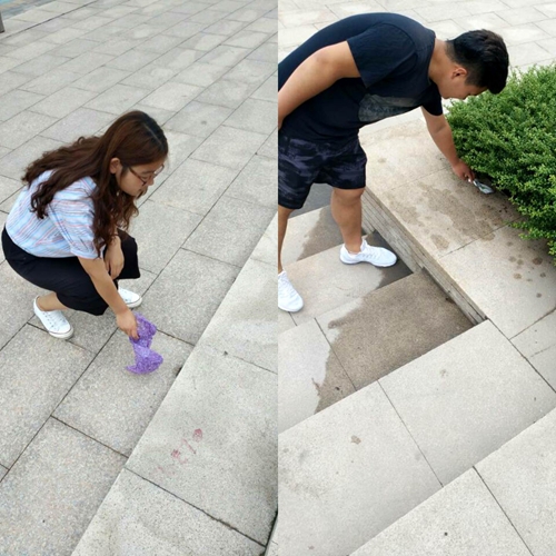 志愿者们捡拾垃圾