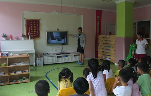 志愿者们向小朋友们展示了振超班成员通过数控5轴加工机床加工制作的大力神杯和360度立体投影,通过小实验、小游戏等方式加以讲解说明,并利用视频放映的方式,为小朋友们讲解了大力神杯的制造过程,让小朋友们在观察、发现、体验中感受科学探索的乐趣。活动受到幼儿园教师的一致好评。
