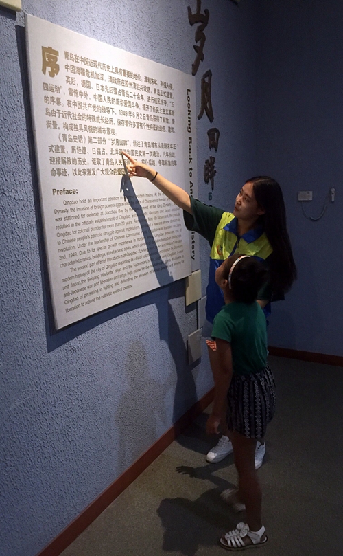 通过博物馆工作人员的前期培训,志愿者被分配到各个岗位上,有的担任展区的讲解员,向观众讲解博物馆展品的故事,了解青岛的历史发展;有的担任接待员,负责观众的咨询引导。几天来,志愿者成为博物馆与观众之间传承文明、传播优秀文化、展示城市精神的桥梁,志愿者们认真严谨热情的工作态度以及强烈的责任心,受到观众以及博物馆工作人员的一致好评。