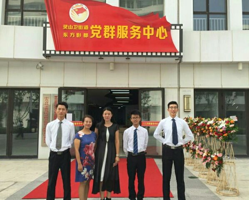 8月10日上午,灵山卫街道办事处在灵山卫街道办事处东方影都党群活动中心举办“学院路社区影视文化大讲堂”揭牌仪式,我院旅游学院党总支书记李明杰及大学生礼仪社团、旅游学院创客社团3名学生参加了此次活动。