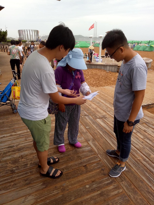 八月的金沙滩迎来游客高峰期,普及安全知识也更为重要。因此,信息学院志愿者来到金沙滩,首先采用访谈调查的形式了解了市民对夏季安全知识的认知程度,然后采用图文并茂的方法向他们详细地讲解了夏季防中暑、防溺水知识。宣传过程中,每位游客都积极配合,认真倾听。志愿者诚恳的态度也受到了游客们的高度赞扬。