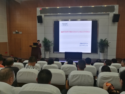 9月5日上午,后勤服务中心在我院报告厅举行了2017年秋季学期食堂从业人员食品安全培训会议。后勤服务中心副处长李淼、餐饮部全体人员及食堂各窗口负责人参会。