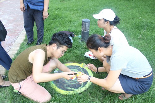 新港山路居委会是艺术学院的对接社区,在夏季学期伊始,这个团队就组织同学们进新港山路山海湾小区开展过绘制井盖的活动。活动开展过程中,艺术学院相关负责人、生物与化工学院团总支书记、院团委工作人员纷纷加入到同学们的行列中,与同学们一同绘制井盖。社区居民对这样新鲜有趣的志愿形式表示赞赏,还有过路的小朋友也加入行动,在井盖上添加充满童趣的颜色和图案。后期,新港山路居委会负责人周书记为艺术学院相关负责人介绍了社区的基本情况,同时对学院和同学们的付出表示感谢。夏季学期该团队成员又赴菏泽市牡丹区小刘镇开展绘制墙体活动,一面面白色单调的围墙经过“神笔马良”们的绘制后,出现在小镇的街道上,整个村庄顿时生动了起来。
