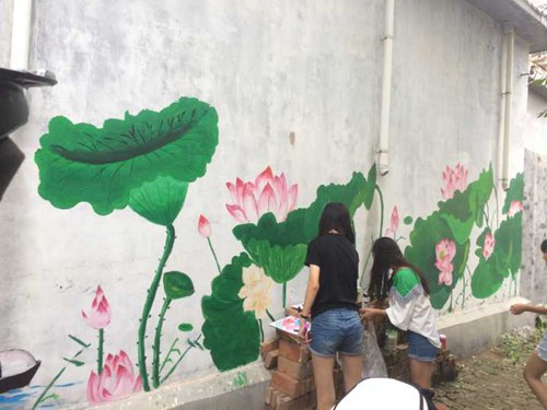 艺术学院“宣传故土乡情,绘制艺术人生”团队成员结合自己的专业知识,与社会实践相结合,为社区和村庄披上了漂亮的“新衣”,该团队将继续以“绿色、生态、文明”为主题元素,为更多的社区手绘美化,逐步披上外衣,成为城市建设中的一道独特的风景线。