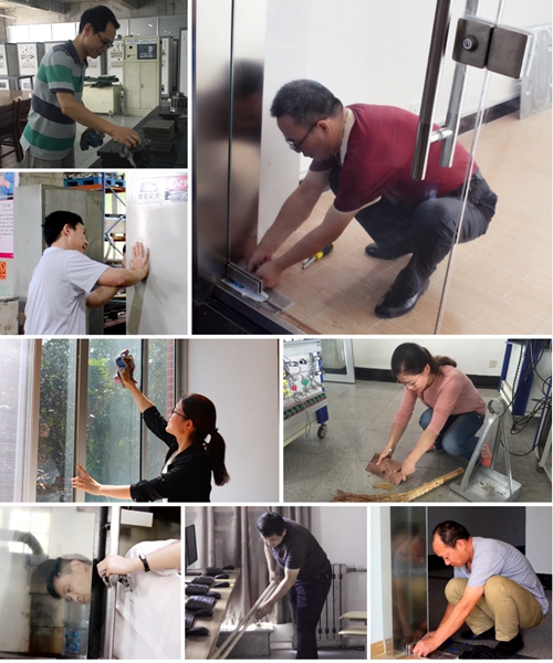 夏季学期,海尔学院智能家电产品实训中心五个实训室建设完毕,实训基地的部分实训室、教室也改造完毕。经过近两个月的建设,教室的窗台、桌椅、地面蒙上了一层厚厚的灰尘,实训设备、桌椅、工具都需要整理归位。30余名党员教师分成四组,带领60余名学生干部分别在中央空调实训基地、数控技术实训基地、电工电子与自动化技术实训基地、智能家电产品实训中心开展劳动。劳动中,师生们搬桌椅、搬设备、擦设备、擦门窗、扫地、拖地……挥汗如雨,干劲十足。