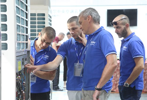 9月11日,2017年度海尔集团商用空调全球技术经理人技术培训会在我院举行,来自美国、澳大利亚、西班牙、意大利、葡萄牙、以色列、伊朗、阿联酋、巴基斯坦、泰国、约旦等全球31个国家的76名全球技术经理齐聚海尔学院,开展为期两天的中央空调相关技术培训。培训主要针对新产品技术、新的测试软件、新控制系统、新的设计软件应用进行实战训练。