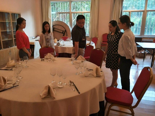 为做好2017年省赛备赛工作,酒店管理专业利用夏季学期积极组织学生进行了备赛训练。为检验备赛效果,酒店管理专业依据省赛标准,对中餐服务、西餐服务、中式铺床备赛选手进行了测试。旅游学院院长李成指导检测了学生备赛情况,为备赛选手进行专业点评,并给予专业指导;参与备赛的指导教师也根据学生的情况及时发现问题并采取积极有效的措施,有针对性地为每一位备赛选手制定下一步的训练计划,做好强化训练,为参加省赛做好充分准备。