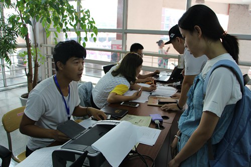 为确保新生顺利办理各项入学手续,我院学生会及在校学生党员共同组成志愿团队。早晨6:30各岗位准备就绪,在学校内外进行引导工作,并带领新生完成报到手续、办理入住。为了让新生更快地适应大学生活、了解专业信息、熟悉学校环境,志愿者们向新生详细介绍了学校的有关情况,各专业教研室教师在家长休息处,为报到新生与家长提供咨询服务,介绍专业情况与课程设置等信息。