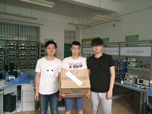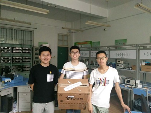 获奖学生刘辉、孙程、李伟振在实验室密封比赛作品