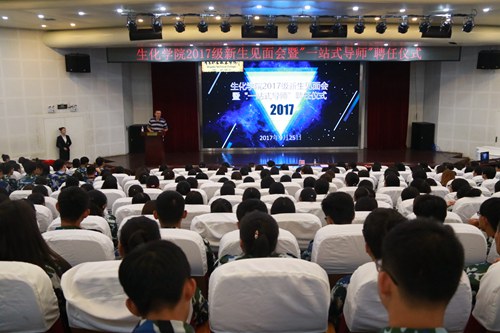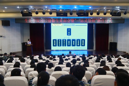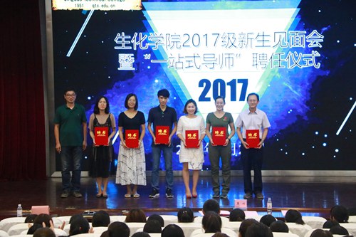 9月25日,生物与化工学院在艺术厅举办2017级新生见面会暨“一站式导师”聘任仪式,院长覃川出席活动,生物与化工学院院长吕海金、党总支书记邵凯、副院长鲁晓泽、生物与化工学院部分教师以及2017级511名新生参加了此次活动。