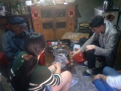 在徐爷爷家中,同学们与老人聊起了家常,关心地询问老人近期生活以及身体情况,祝福老人健康长寿。徐爷爷对同学们连声感谢,他表示,虽然自己一人独居山上,但是长期以来一直受到崧霖爱心社的帮助与关心,让自己的生活不再孤单。