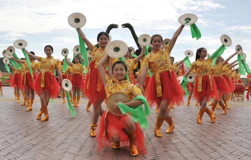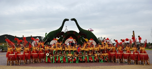 我院学生主要参加的是“山西威风锣鼓”艺术展演。山西威风锣鼓是诞生和流行于晋南一带的民间传统打击乐,是国家级非物质文化遗产,主要由锣、鼓、铙三种乐器共同演奏。为达到更好的演出效果,9月下旬,西海岸生态园特邀山西锣鼓的两位传承人来我院为参演学生进行了艺术指导。从最初的识谱、唱谱、节奏学习,到每个表演细节的反复练习,同学们不惧辛苦,表演渐入佳境。经过20余天的刻苦训练和层层选拔,我院68名学生脱颖而出。同学们在国庆展演期间共演出15场,其中6名学前教育专业的学生还在园区进行了蒙古族舞蹈《鸿雁》的展演,同学们的表演受到游客和西海岸发展集团的一致赞赏。展演结束后,西海岸发展集团对我院学生进行了表彰,有10名学生荣获“优秀个人奖”,4名学生荣获“突出贡献奖”。