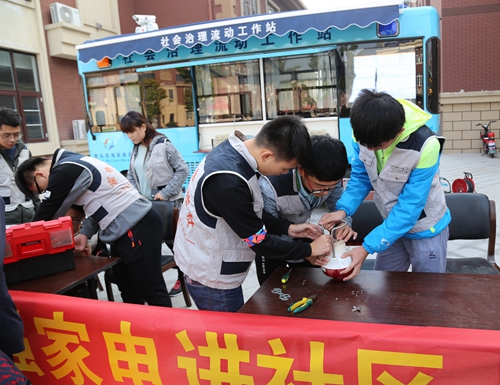 为以实际行动迎接党的十九大胜利召开,引导和激励广大青年在实践中服务社会,助力中国梦,10月16日,海尔学院小强家电维修社来到中德生态园弗莱社区,开展“喜迎党的十九大,义务维修献真情”活动。