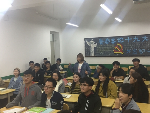 活动中,首先由各班团支书向班级同学传达十九大最新消息,对十九大精神进行深度解析,并组织同学们以“我眼中的十九大”为主题进行讨论,对过去五年中国快速发展取得的巨大成就进行总结阐述,并展望未来五年的发展与变化。随后,各班团支书组织同学们进行“你画我猜”游戏,同学们通过喜闻乐见的形式对十九大报告中出现的词语,譬如“中国特色社会主义新时代”“老虎苍蝇一起打”“全面从严治党”等名词进行趣味解释,同学们积极踊跃参与,乐在其中。